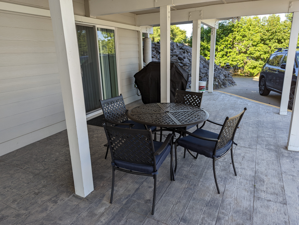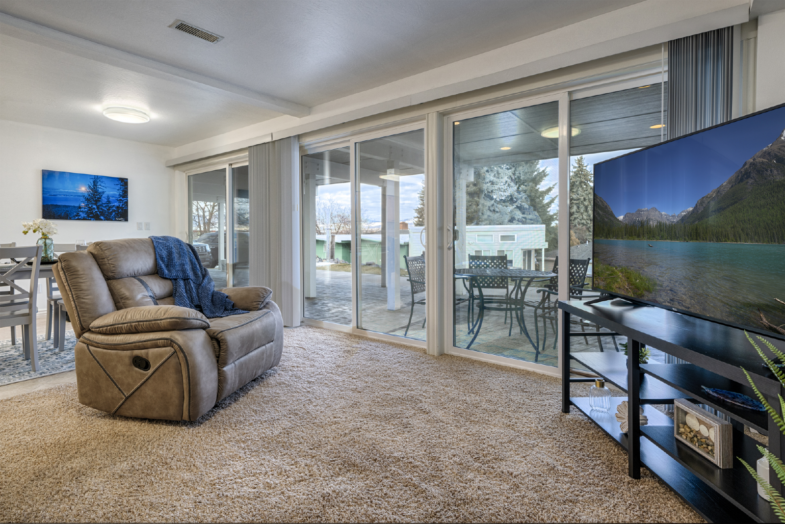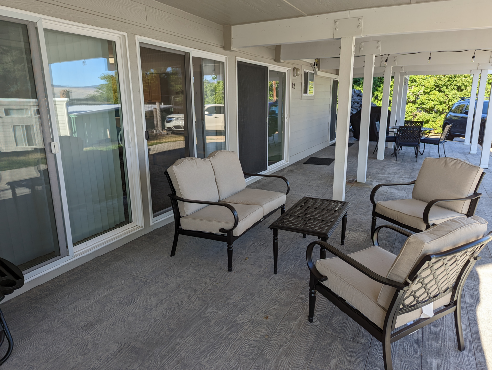 Indulge in sweeping lakeside views and easy access to our shared private day dock and beach area, where you can swim, kayak, fish, or simply unwind by the tranquil shores. Our well-appointed kitchen allows you to prepare delicious meals to be savored with family and friends, while the large fully furnished Patio provides the ideal spot to bar-b-que, and play outdoor games and cards while soaking in the beauty of your surroundings, even raining.
