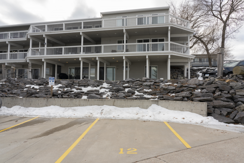 PARKING: A parking pass is not required. One assigned parking space (space #12) is available below the condominium, accessible via steps leading to the condo, or you may park in any open spaces on the property. Please do not park in front of the garages situated above the condominium.
